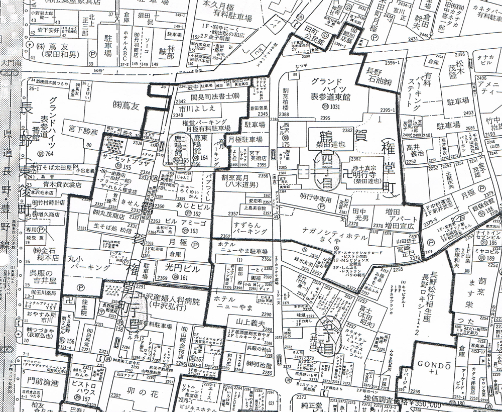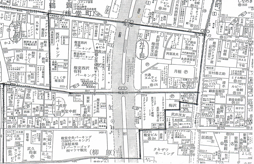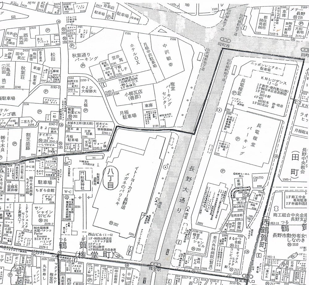 • 権堂アーケードの住宅地図。マクドナルド・ラオックスもあるよ。