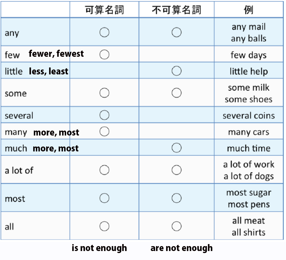 上記語群は、可算・不加算の違いはありますが、「名詞」を修飾する働きなので、形容詞です。