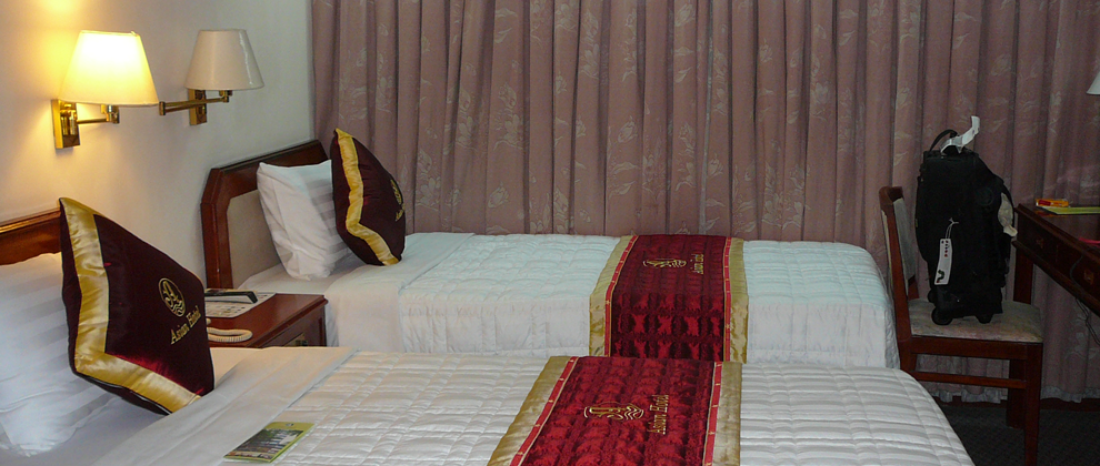 高級な部屋に不釣り合いな、くたびれた私のリュックサック。