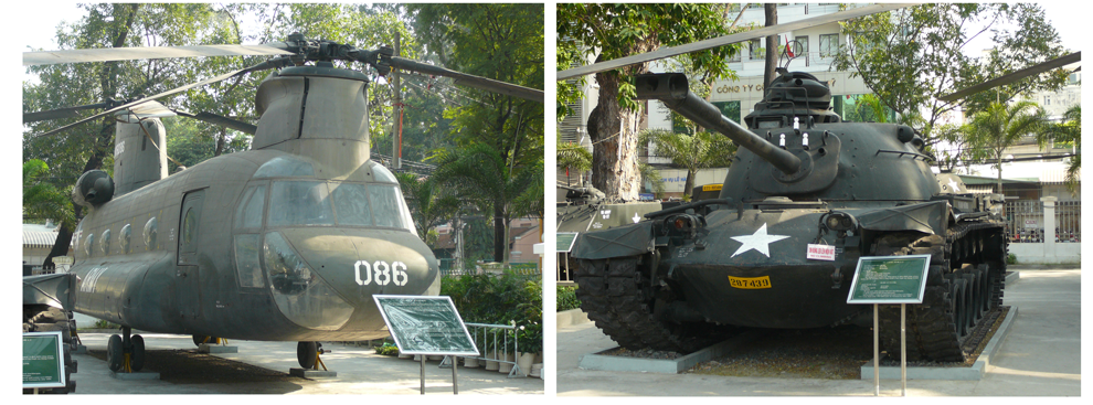ベトナム戦争で使用された戦闘機や戦車が、野外展示されています。