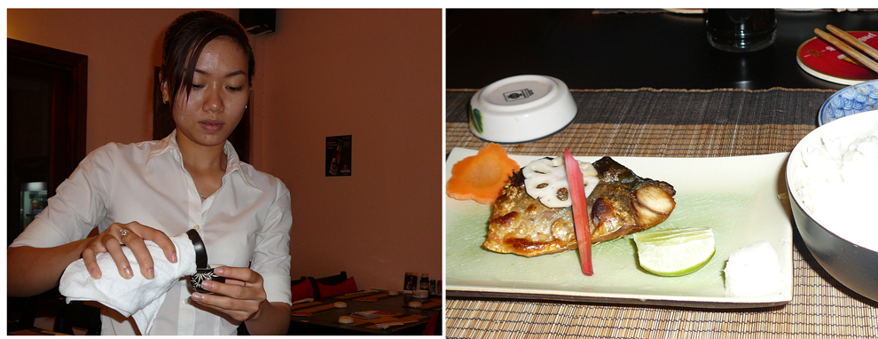 本日の夕食は、「レタントン通り Lê Thánh Tôn」上下線の間に位置する、和食店「華紋」です。(2020年11月現在存在せず)
