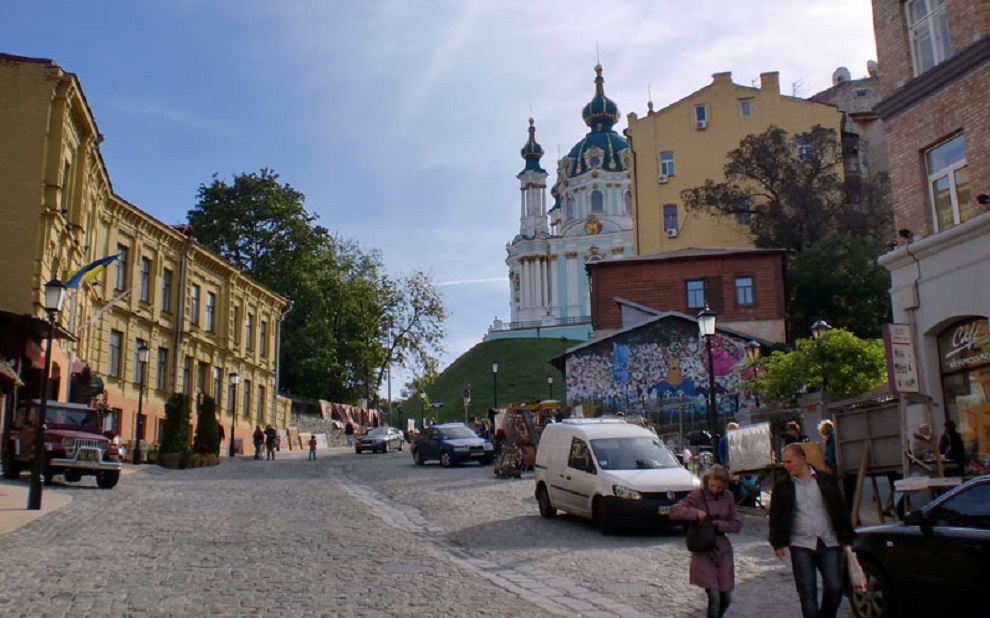 周囲はキエフの古い街並みがよく残った賑やかな通りです。土産店が軒を連ね、観光客が集まることから「キエフのモンマントル地区」と呼ばれることも。