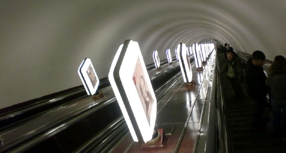 キエフの地下鉄。シェルターとして使えるよう、深い位置に造られています。
