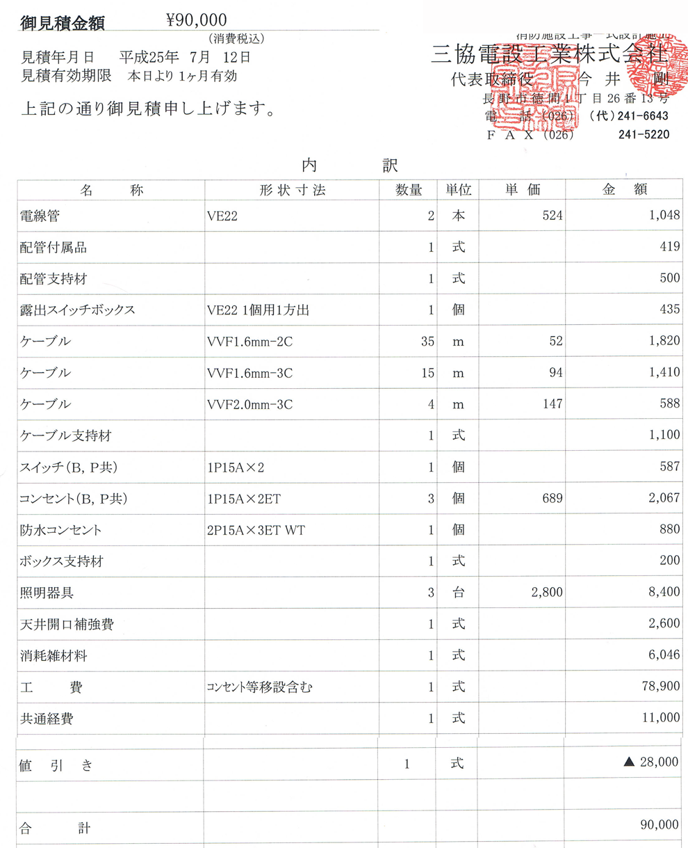 下は今回の工事費。