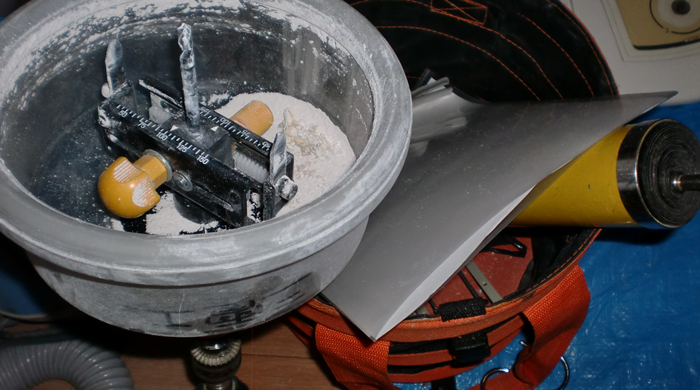 天井の石膏ボードに穴を開ける際、切り屑をキャッチするカップが付いた便利な道具です。