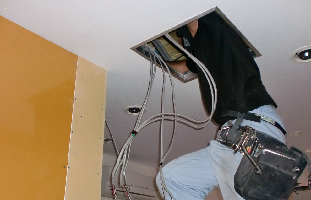 厨房の天井裏にダウンライトを設置しました。