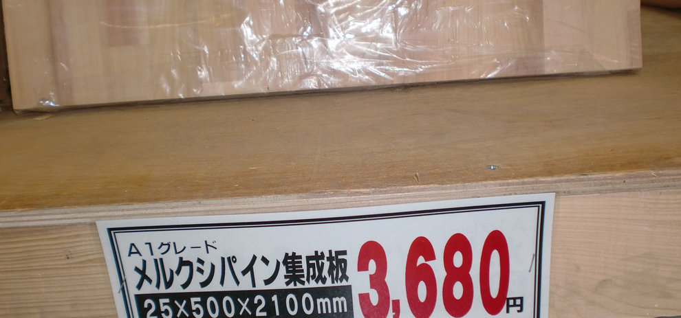 ホームセンターで見つけた、カウンターとお揃いの集成材。
