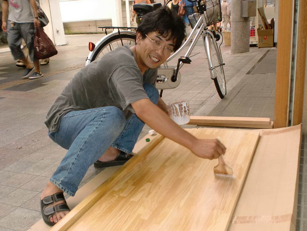 1回目で木材の目止め、2回目で表面を平滑にし、3回目の塗りで光沢を出します。
