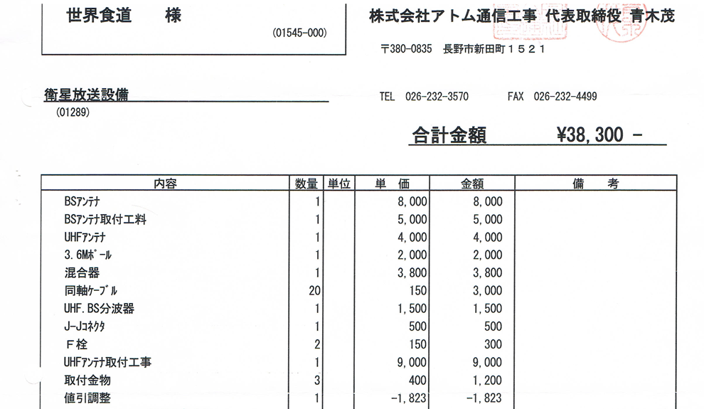 ビル3F屋外にアンテナを設置のうえ、屋内に分波器を取り付け。