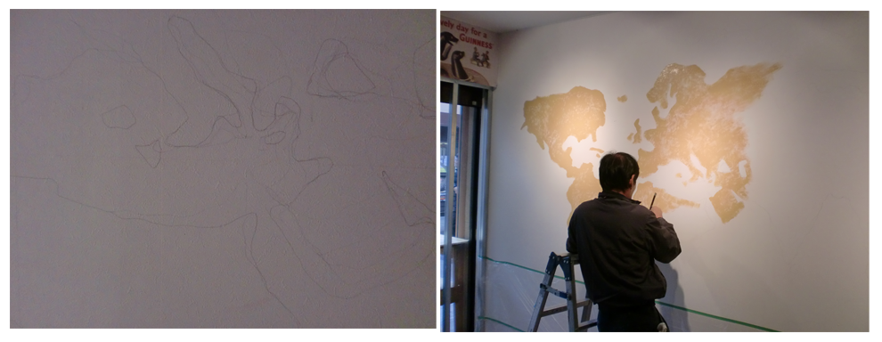 店内イメージを一新するため、壁いっぱいに地図を描くことにしました。