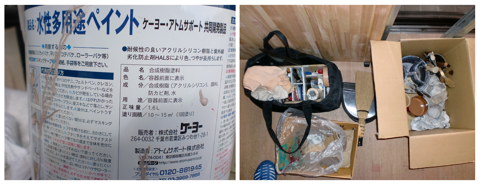 使用しているのは絵の具ではなく、工事用の水性塗料です。