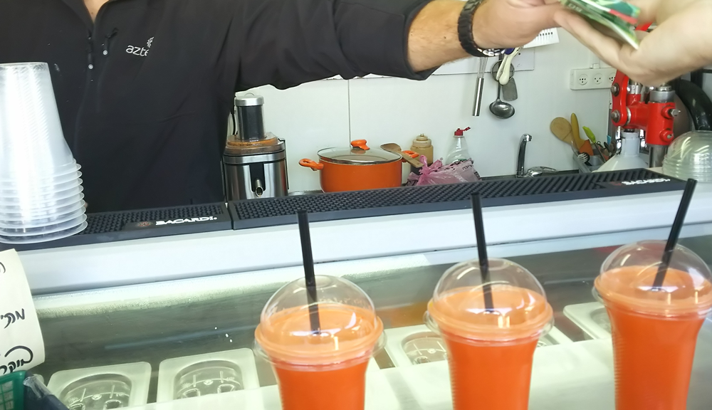 エルサレム Posted on 2015年3月5日2023年7月9日Posted author okubo Today’s itinerary Breakfast at Ada’s place (Shlomi’ s sister) Short tour in Modiin city. Drive to Jerusalem, old city tour. Stay at Rina’s Place (Shlomi’s sister) スタンドでよく見かけたキャロットジュース。 ニンジンを鷲づかみにしてミキサーに投入します。 この記事をSNSでシェア!