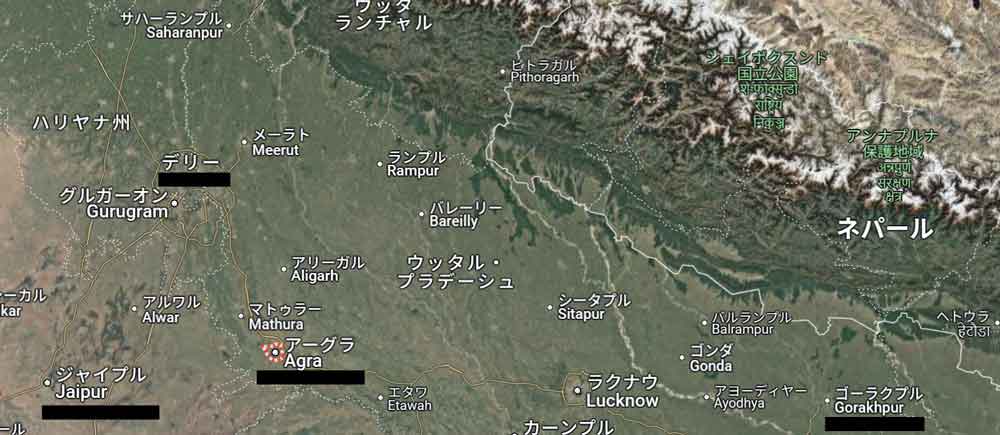 タージマハルを見学するため、ウッタルプラデシュ州の都市アーグラ(Agra)へ移動