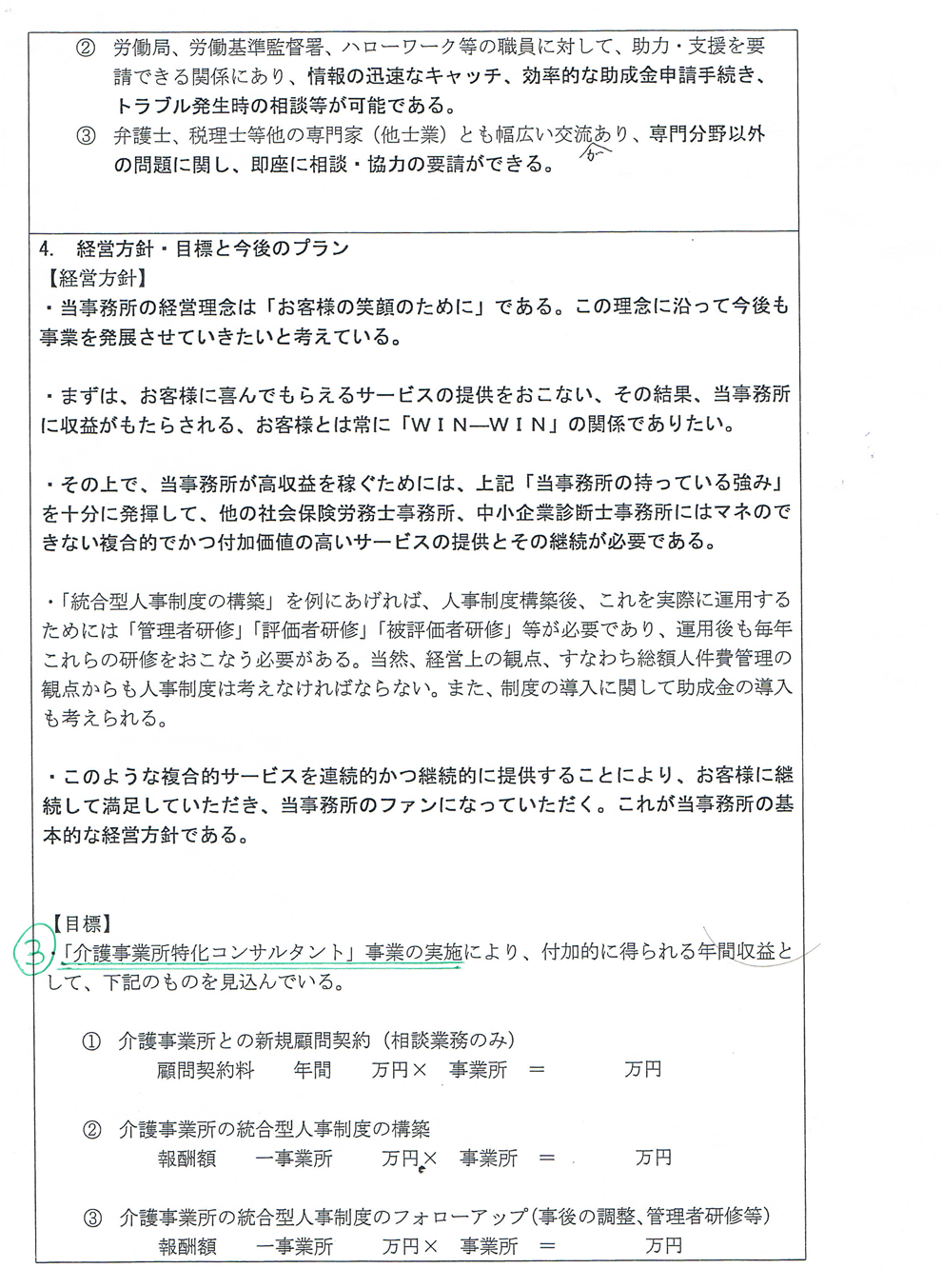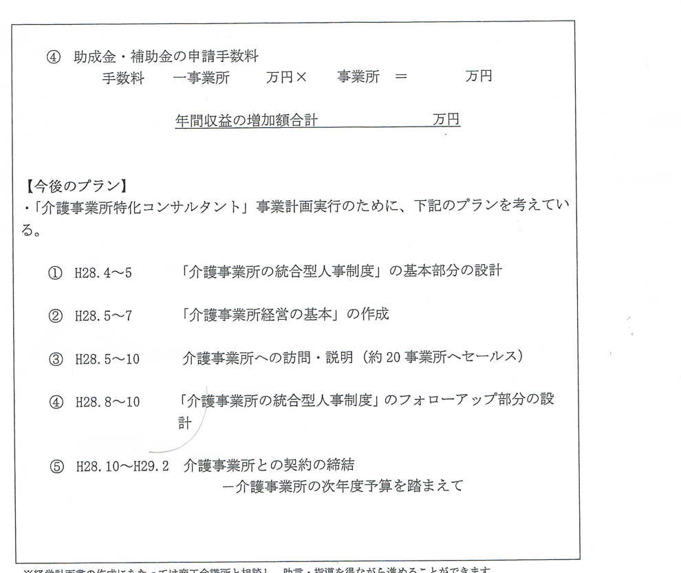 以下は「地元信用金庫に6年間勤続後、社会保険労務士事務所を設立して独立開業した個人事業者主」が、補助金を申請するという設定での申請書作成例です。