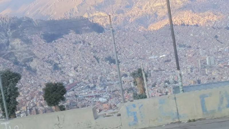 16:00過ぎ、すり鉢状の斜面に家々が立ち並ぶラパスの街が、忽然と姿を現した。