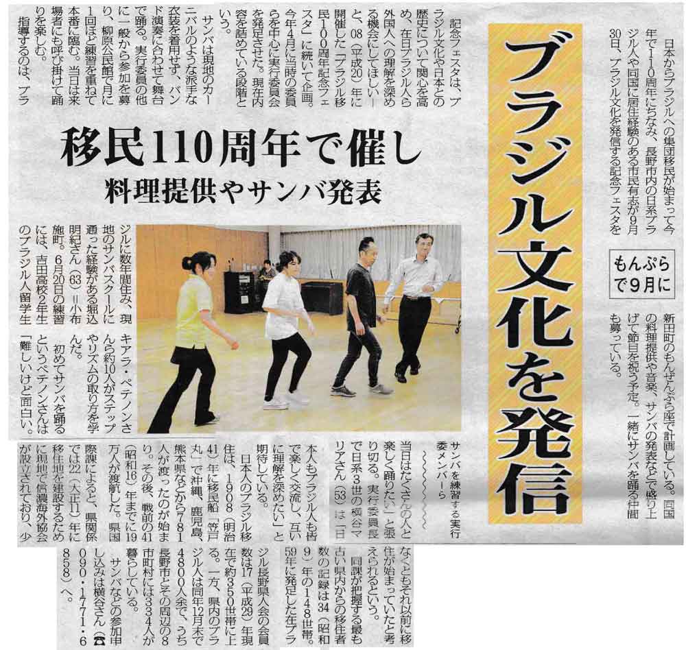「ブラジル移民100周年記念フェスタ」が、長野市民新聞に取り上げられました Posted on 2018年7月10日2025年6月15日Posted author okubo この記事をSNSでシェア!