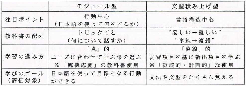 前者には「文法積み上げ型」が、後者には「モジュール型」が適しています。