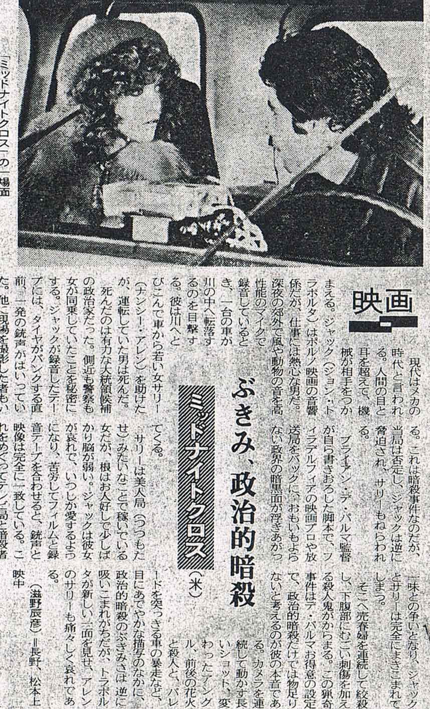 「デ・パルマ監督作品では、『ミッドナイトクロス 』(1981年) が一番好き」と言った私の話を覚えていて、わざわざ昔の映画評をコピーしてくれたのでした。