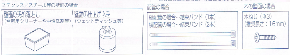 まず、壁面の汚れを落とすための「台所用クリーナー」と、そのクリーナーを拭き上げるための「ウェットティシュ」を用意します。