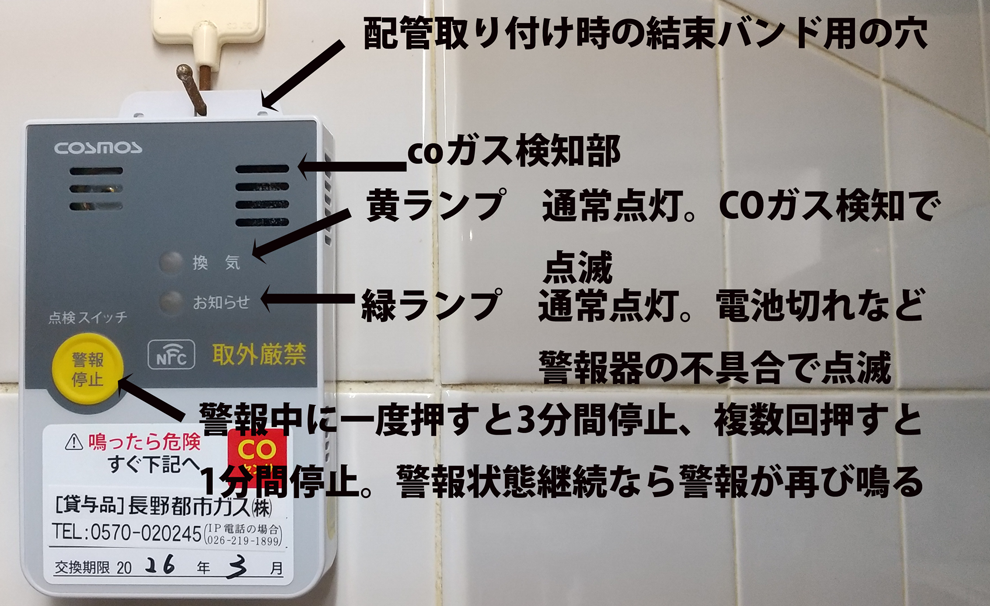 開栓に合わせ、長野都市ガス㈱の担当者が「ガス警報器」を取り替えてくれたのですが、その取り扱い説明書を読んでビックリ。
