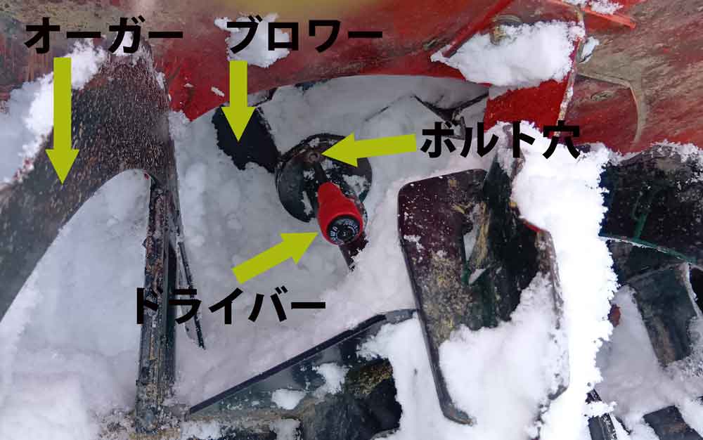 ブロワーボルトはオーガーの奥にあるため、付け替えは、なかなか面倒だ。
