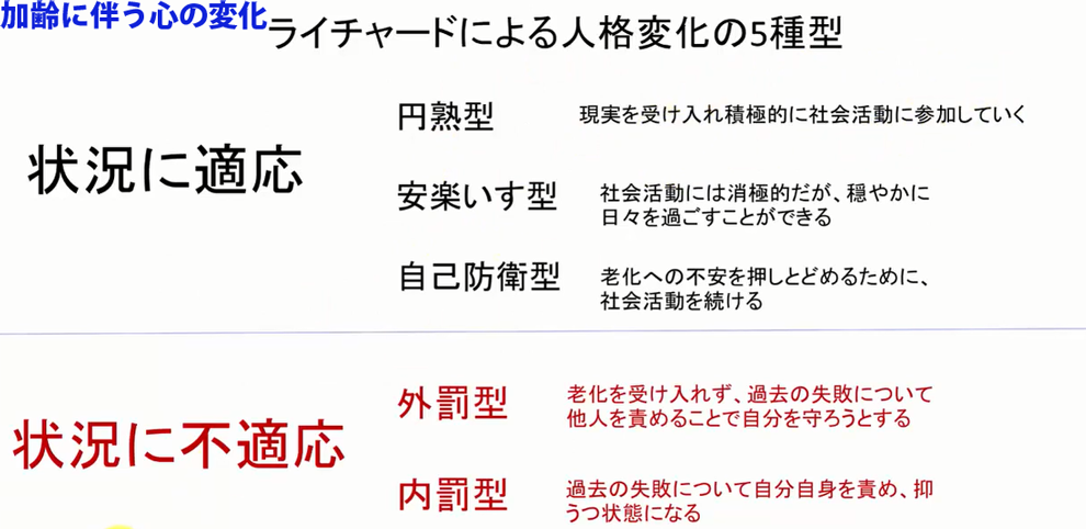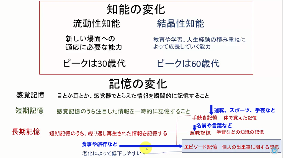 加齢 (かれい) に伴って、① 身体 ② 知能・記憶 ③ 心、それぞれに現れる変化を、まとめておきましょう。